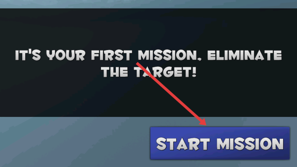 2、看到首任务提示后,根据箭头指向处,点击蓝色START-MISSION按钮,开始执行消灭目标任务。