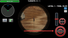 3、在狙击场景中,需要点击AIM按钮瞄准目标后点击右侧FIRE按钮,射击消灭目标完成任务。