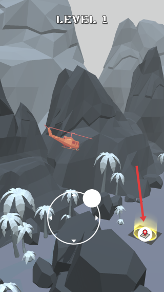 1、通过拖动控制盘来操控直升机起飞,并飞往目标点寻找发光的救援标识。