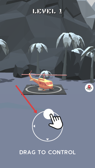 2、在地形中控制摇杆穿梭,精准降落救援,完成关卡。