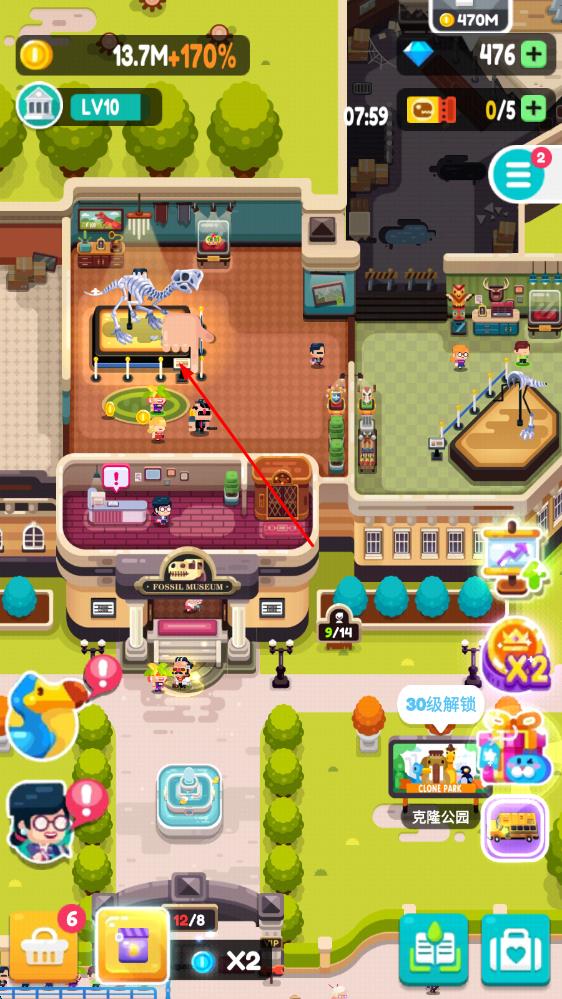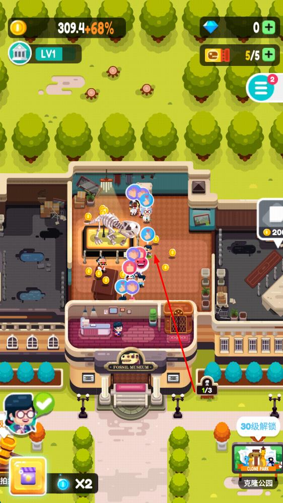 2、在游戏过程中,使用收益来升级员工和考古队伍,挖掘更多稀有化石以补充完整的古物,扩大展览厅规模,解锁快速盈利方式,提高博物馆的知名度。