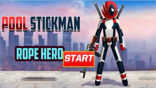 1在Pool-Stickman-Rope-Hero的界面中,点击START按钮,开始火柴人绳索英雄的城市冒险之旅,然后点击开始游戏。