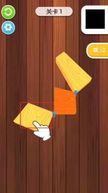 1、开始时,我们按照白色手指的指示,旋转红框中的黄色木板,调整它的角度,使其与旁边的橙色木板对接,逐步构建出完整的图形。