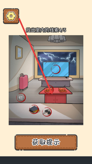 3、找出室内的的线索,点击图中的看上去有异样的线索,除已发现的线索外,还需关注窗外天气变化。
