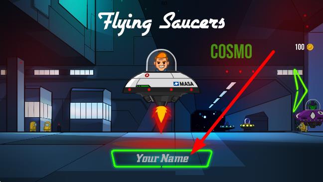 1进入界面后,我们需要点击输入框,自定义飞行员的名字,以此完成飞碟驾驶员的身份设定。
