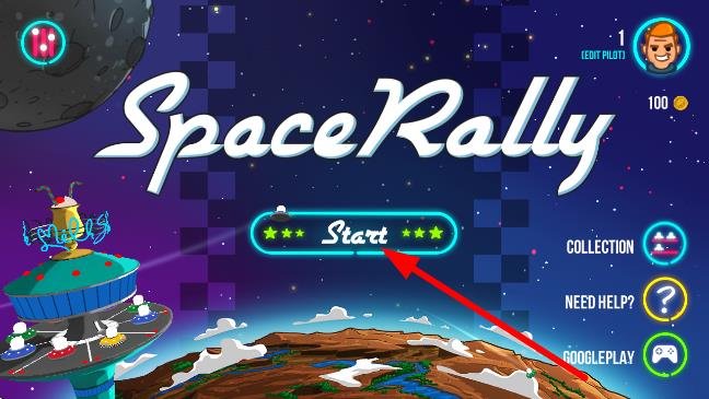 2、在游戏界面里,我们点击按钮开始太空拉力赛,我们将操控飞碟进行竞速挑战。