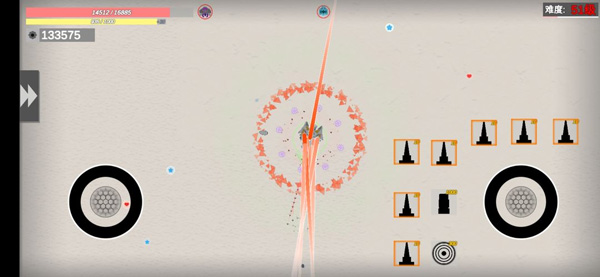 就我个人的游戏体验来说,操作太烂常常会让我被弹幕糊脸,血量很容易就见底了。所以对我而言,血包堪称是开局的极佳道具。血包是个红色桃心形状的道具,击杀敌人就能获取,是回血的必备之物。接着说说它的孪生道具能量包,能量包是蓝色五角星模样,同样通过击杀敌人来获取。这两个道具在游戏里都极为重要,要是前期能拿到,就算操作再差,也能玩到20级难度才结束。还有个紫色的吸血道具,名字我一时想不起来了,它的效果是按照对敌方造成伤害的一定比例转化为自身吸血,堪称后期神器。
