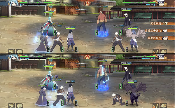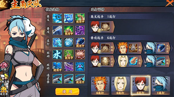 2、雷主的“雷遁忍者强化”能保证前三回合的高伤害输出;“武者的根性”则可以提高阵容里带刀忍者达鲁伊与三船的抗性,普攻选择“凝神”,可以恢复查克拉以便保证队伍的灵活性。