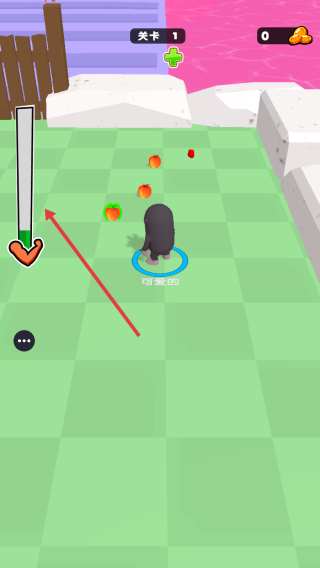 2、在角色移动收集的场景中,左侧会显示一个进度条。通过操控角色收集水果等物品来填充这个进度条,从而完成关卡任务或提升角色属性。