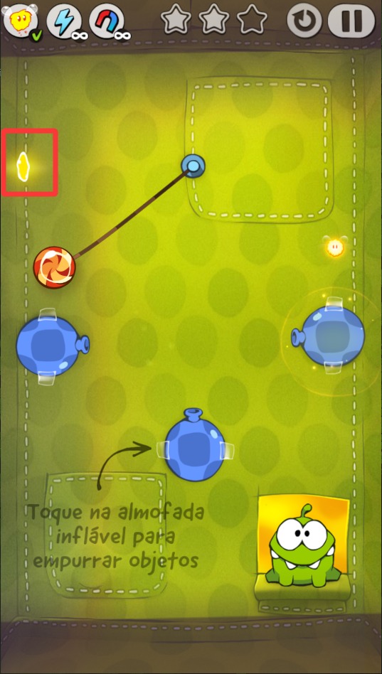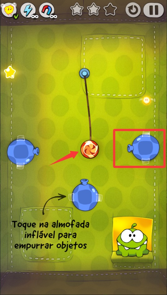 3、当糖果经过星星附近时,迅速点击收集道具,注意把握时机才能拿到全部三颗金色星星。