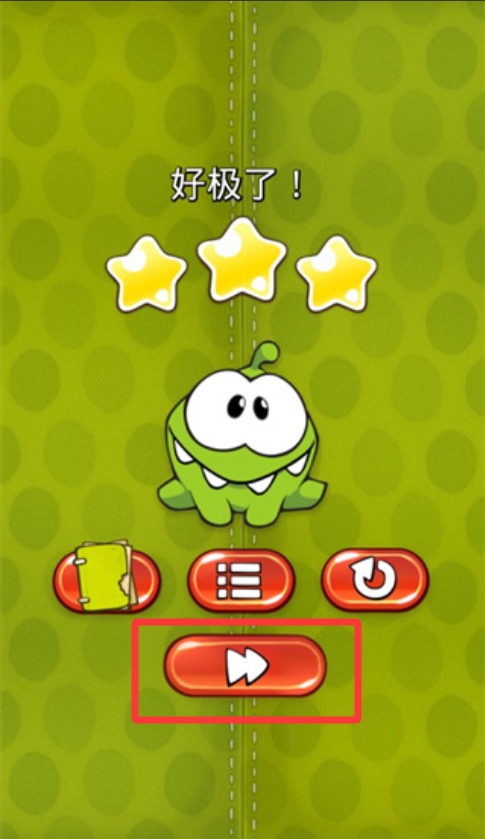 4、最后确保糖果成功落入小怪兽的嘴里,系统会自动弹出通关提示并解锁下一关卡。