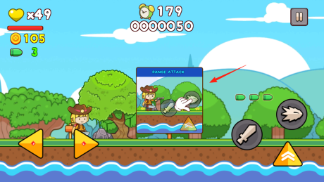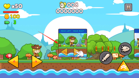 1进入牛仔超人的世界,根据提示,点击左右移动按钮来控制角色在地形上行走。通过这些操作,让角色探索场景、避开障碍物,并推动游戏进程,从而体验基础的移动机制。