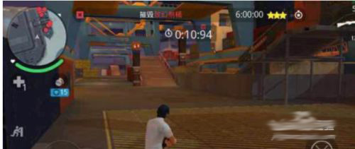 5、然后站在位置将剩余敌人清理掉,清理完后马上向高台跑,可以走的捷径,直接翻上去,走到高台的黄圈后立马跳下来,冲到黄圈后就找地方躲起来
