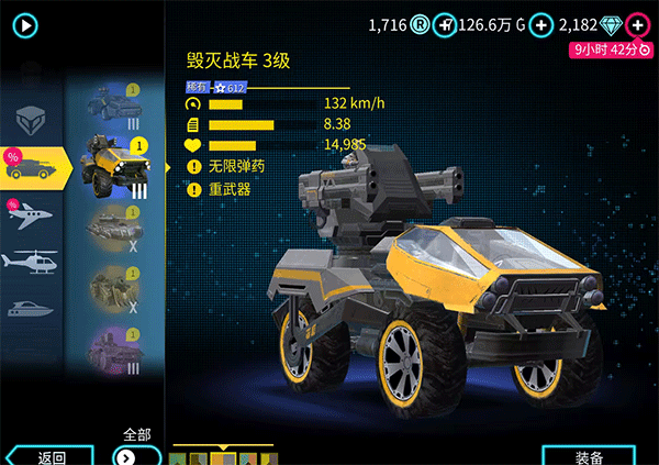 Top2毁灭战车:在骷髅战车现身以前,这两款战车在维加斯中拥有稳固且难以动摇的地位。其主武器能够持续发射炮弹,副武器威力相对较弱,但同样具备对空能力。而且该载具自身还具备碾压技能,能够将其他载具压扁。