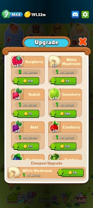 6、游戏的整体玩法为,依据上方角色所需的水果,进行种植与回收,直至完成任务获取金币。