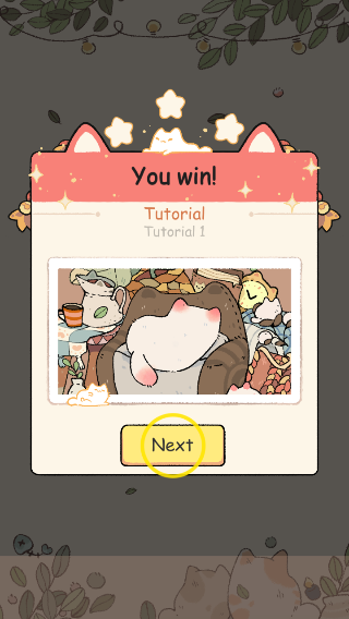 1. 玩家点击上方的卡牌后,卡牌会移动至底部的框内。该框最多能存储7张卡牌,若框内出现3张相同的卡牌,即可实现消除。比如,点击上方的猫咪相框,就能达成三消。