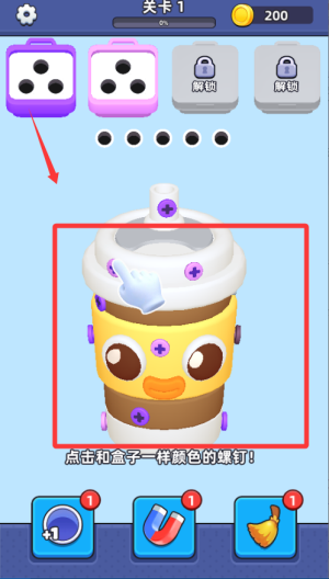 1进入关卡后,首先仔细观察钉子的排列顺序,找到最容易松动的目标,然后根据提示一步步拧下钉子,避免因强行操作而导致失败。
