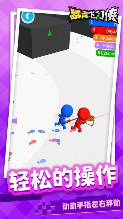 1. 游戏开启后,凭借手指在屏幕上滑动来操控飞刀侠的移动方向,巧妙地走位能够躲开敌方扔出的暗器以及各种障碍物。