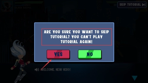 2、选择红框YES确认选项,确定跳过新手教程内容。