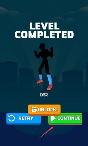 3、点击红框中的CONTINUE按钮,继续进行下一关卡的挑战。