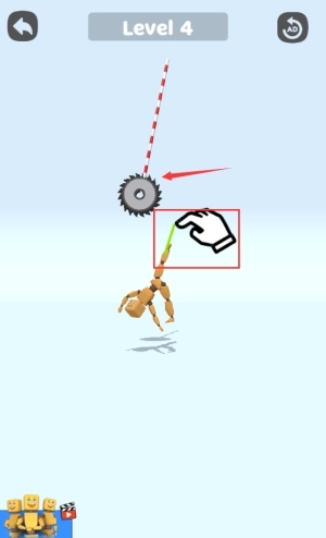 4、触碰红框绿色连接线,控制锯片切割木偶。