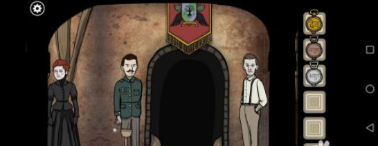 2、把三个怀表,分别放入三个壁画中间的空隙中,得到时间是2:45;