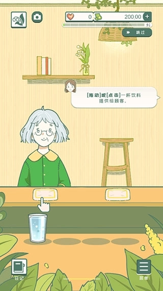 2、左右滑动切换场景到茶水间,为客人制作美味的饮料。