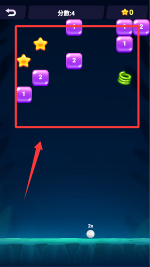 1、主要目标是发射弹珠以消除所有砖块。玩家需要滑动屏幕来调整发射方向,松开手指后,弹珠会沿着轨迹飞出,并通过多次反弹击打砖块,直到清除所有砖块进入下一关。