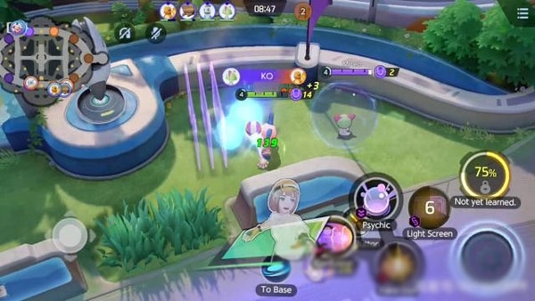 与传统的MOBA手游相似,这款游戏采用5v5对战模式,在限定的10分钟比赛时间内,双方队伍通过获取分数来竞争胜利,得分较高的一方将赢得比赛。玩家可以通过击败野生宝可梦或对方队伍的宝可梦来获得携带分数,之后将这些分数投入对方基地以增加自己队伍的总分。提交分数以及战胜其他宝可梦都可以让玩家获得经验值,随着经验值的增长,宝可梦能够升级进化,并掌握新的技能(这些技能是在比赛开始前就设定好的)。