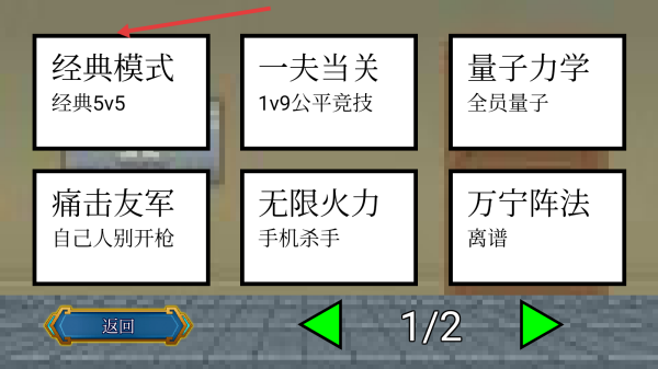 2、游戏有多种模式可选,经典模式是经典的5v5对战,一夫当关为1v9公平竞技。