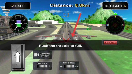 1进入跑道场景后,找到左边的油门控制杆,将其向上推至最大位置,以保证动力输出稳定,为起飞做好准备。