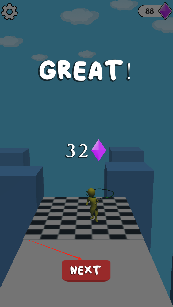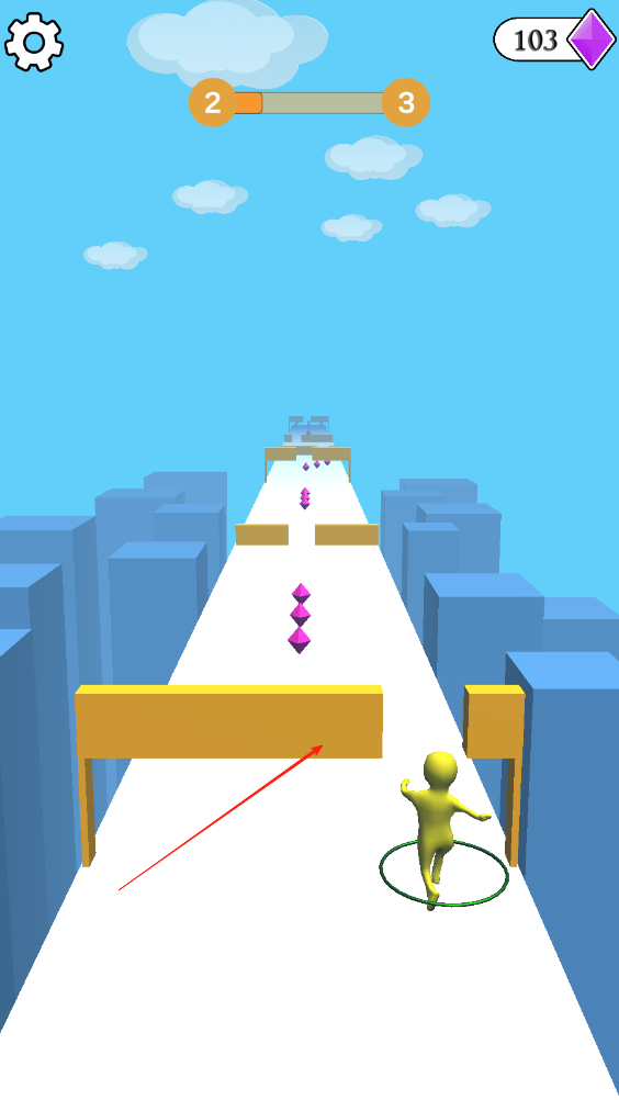 1、观察当前关卡的障碍分布和钻石位置,控制橡皮人启动呼啦圈并尝试向前移动,熟悉保持呼啦圈不掉落的基本操作。
