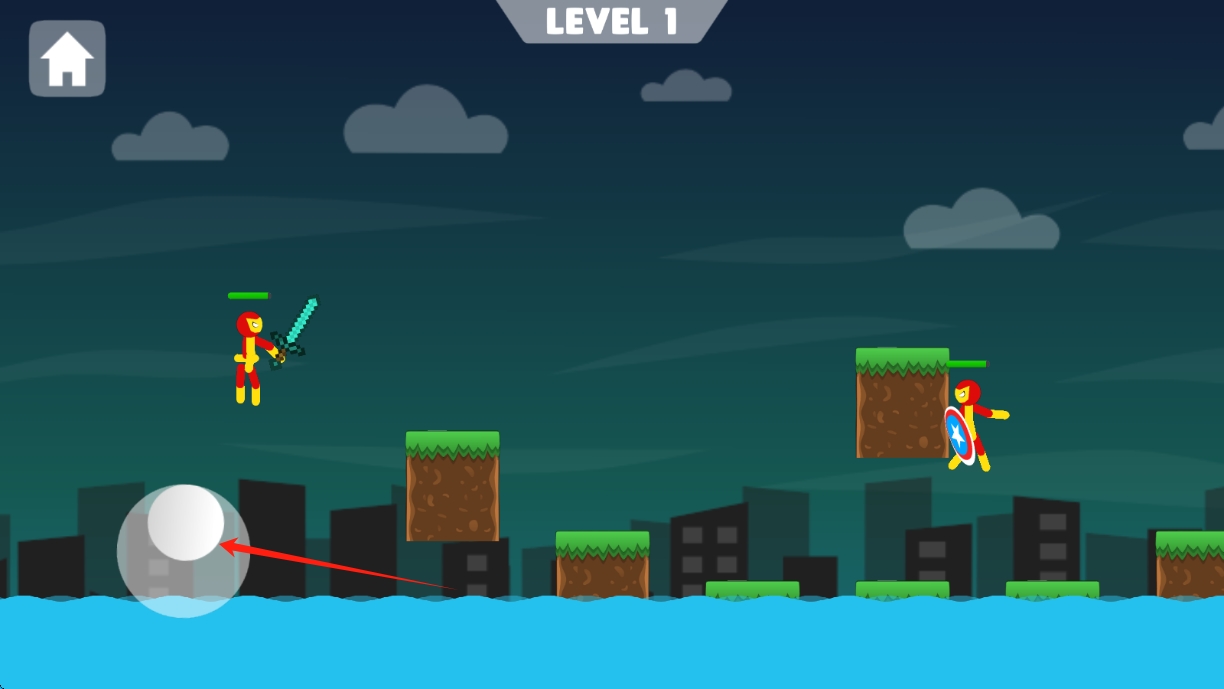 1、在Stickman-Fight-Duel启动界面,点击开始按钮,开启火柴人对决冒险,点击按钮开始游戏。