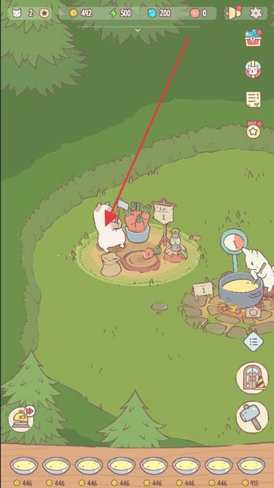 2、履行“猫咪职分”!安排猫咪进行砍菜、煮汤等劳作分工,合理规划2次,避免猫咪闲置,总计完成10次分工。