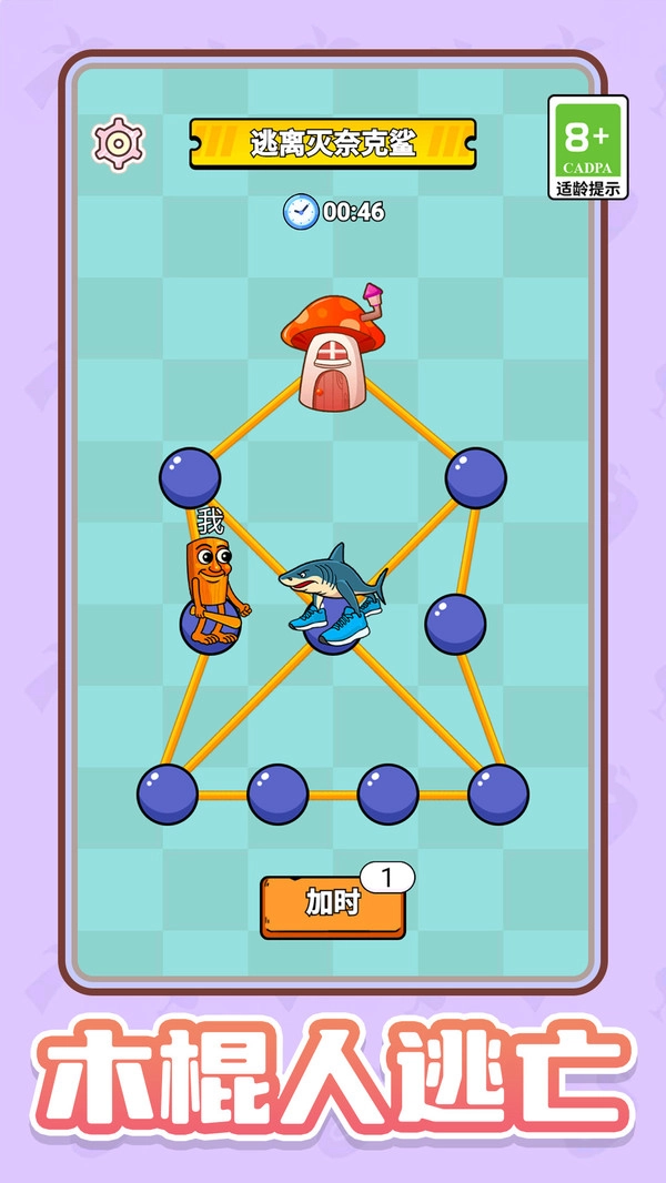 1.木棍人逃亡关卡中,顶部显示当前倒计时时间,玩家需要在限定时间内完成线路连接并成功逃离。