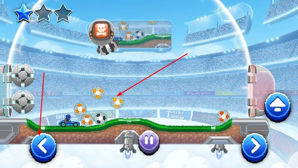 2、在赛道上驾驶时,玩家通过左右箭头按键来控制赛车的方向,避开足球等障碍物,确保赛车能够顺利前行。每一次的方向调整都至关重要,关系到是否能成功通过整个赛道。