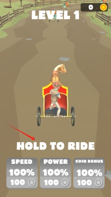 1、在游戏第一关启动界面,长按屏幕,启动马车,开始竞速冒险,点击按钮开始游戏。