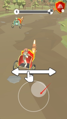 2、进入第一关的游戏场景,按照箭头的指引,灵活操控马车,避开障碍物,并通过转动轮盘来移动角色。