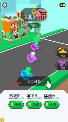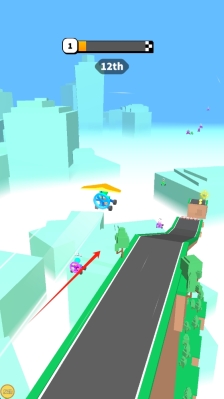2、进入竞速场景后,按照箭头指示操作角色,避开障碍物,超越其他对手,争取保持领先位置,并适时点击进行滑翔。
