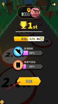 3、在关卡成功界面,点击收集以获取奖励,增强角色能力,为接下来的竞速任务做好准备,然后再次点击收集。