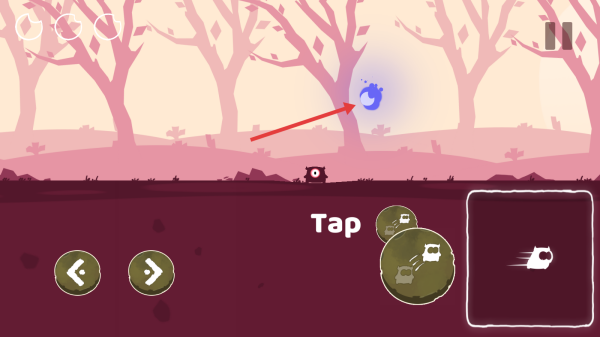 3、在游戏中,控制角色进行移动,通过点击屏幕使角色跳跃,并收集蓝色光点,以此来推进游戏的进程。