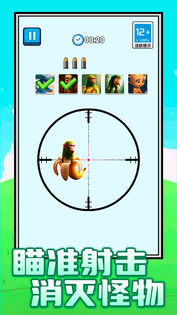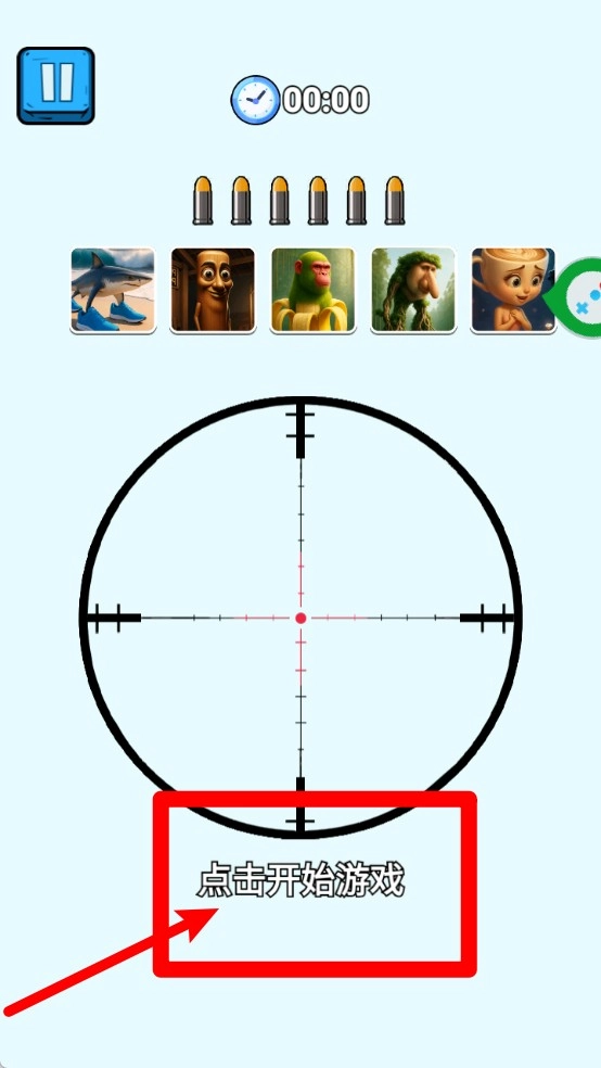 2. 点击屏幕下方“点击开始游戏”按钮,即可进入瞄准模式,在此模式下需运用子弹完成指定目标的射击任务,这十分考验玩家的反应能力与精准度。