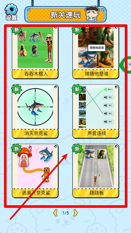 1. 新关速玩界面呈现出众多小游戏选项,像消灭奈克蛙、声音连线以及跳跳板等等,玩家能够自主挑选模式,去体验不一样的玩法。