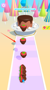 1、蛋糕收集前进:操控角色在关卡中前进,收集各种蛋糕,注意观察蛋糕分布和障碍位置,规划前进路线,确保不撞上障碍的前提下,收集更多蛋糕,为终点的完整蛋糕积累数量。