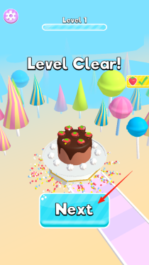3、成功到达终点,界面显示Level Clear,点击Next,进入下一关,通过此操作,解锁新关卡,延续跑酷收集体验,感受关卡推进的玩法。