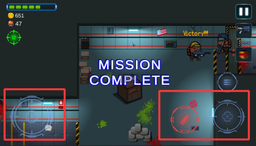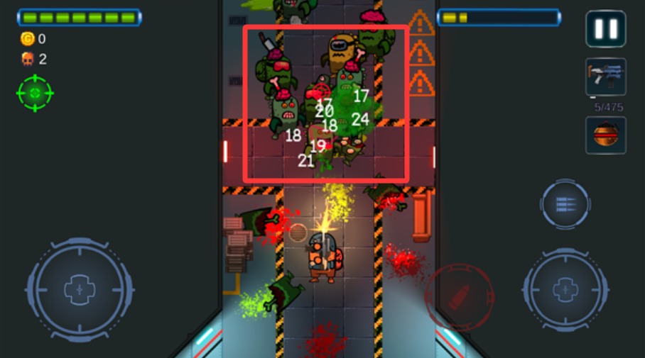 2、用左手滑动屏幕来操控角色移动,用右手点击射击按钮进行攻击,同时要注意保持安全距离以避免受到伤害。
