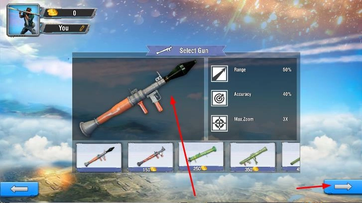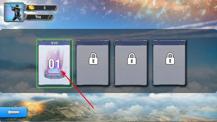 1、在选择关卡的界面中,控制高射炮,利用左侧的瞄准摇杆来调整射击角度,对准空中的敌方飞机。