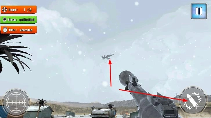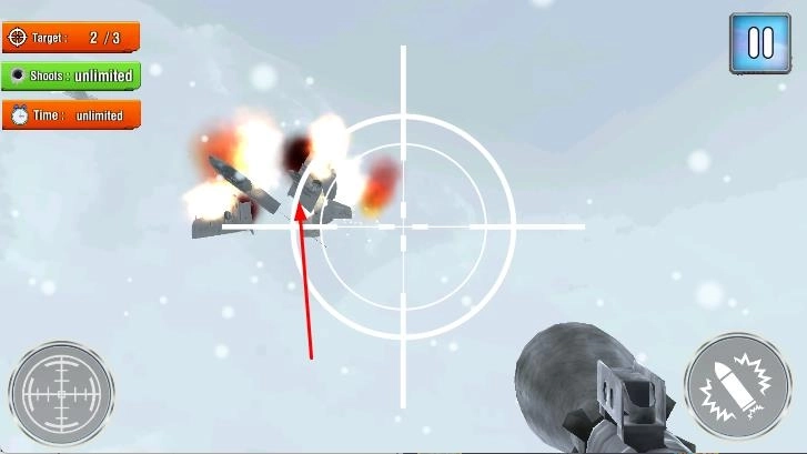 2、在锁定目标后,点击右侧的射击键,发射炮弹攻击敌机。