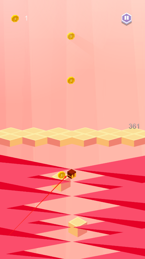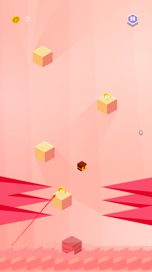 3、游戏是无限模式,爬得越高,记录越高,向上跳跃的过程中注意收集金币,金币可以在赛后购买小方块皮肤。