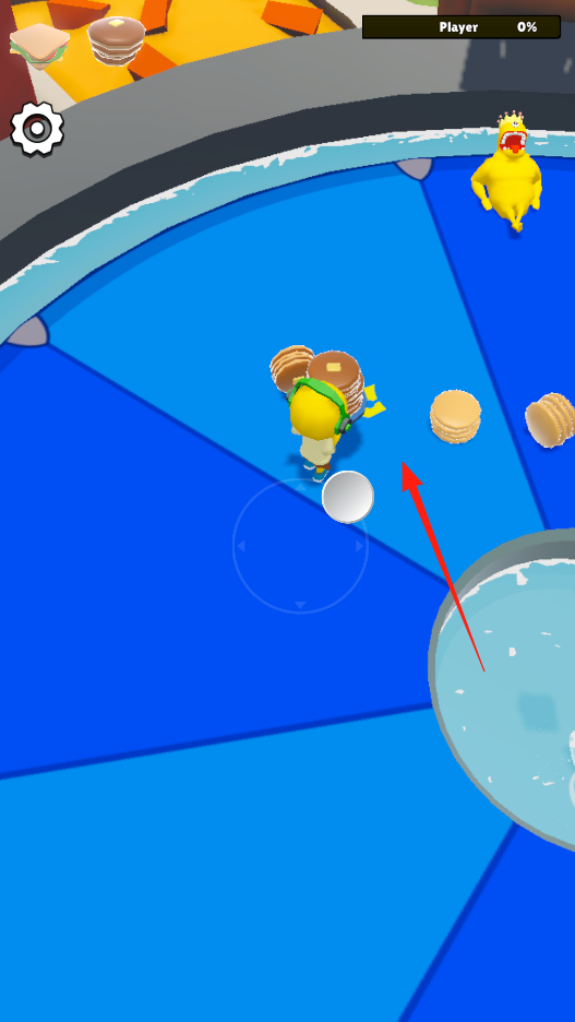 2、进入关卡,角色在圆盘区域行动,收集到食物后,向国王所在位置运送,注意躲避障碍,规划移动路线,将食物成功带给国王,借助运送机制,完成关卡目标。